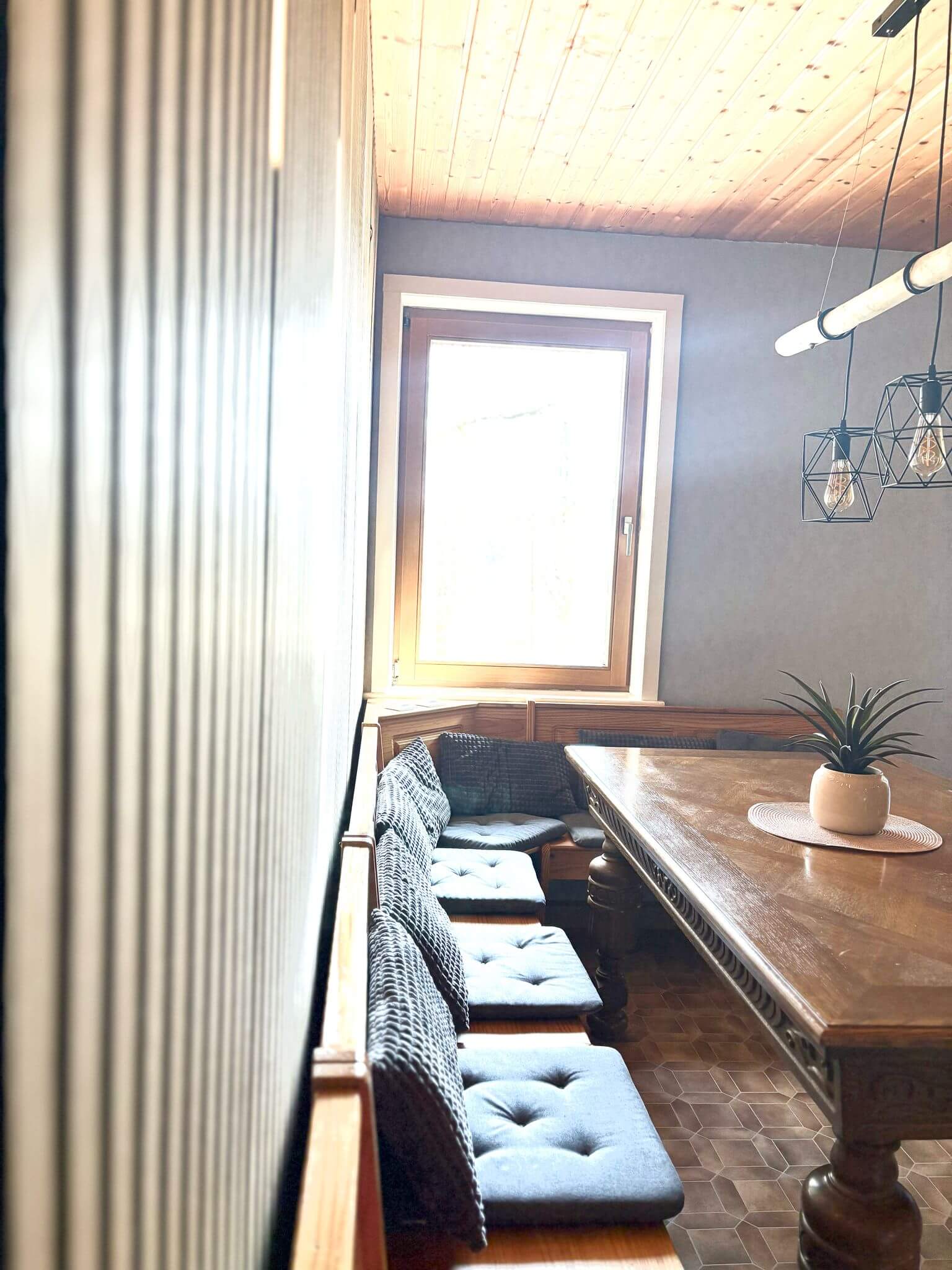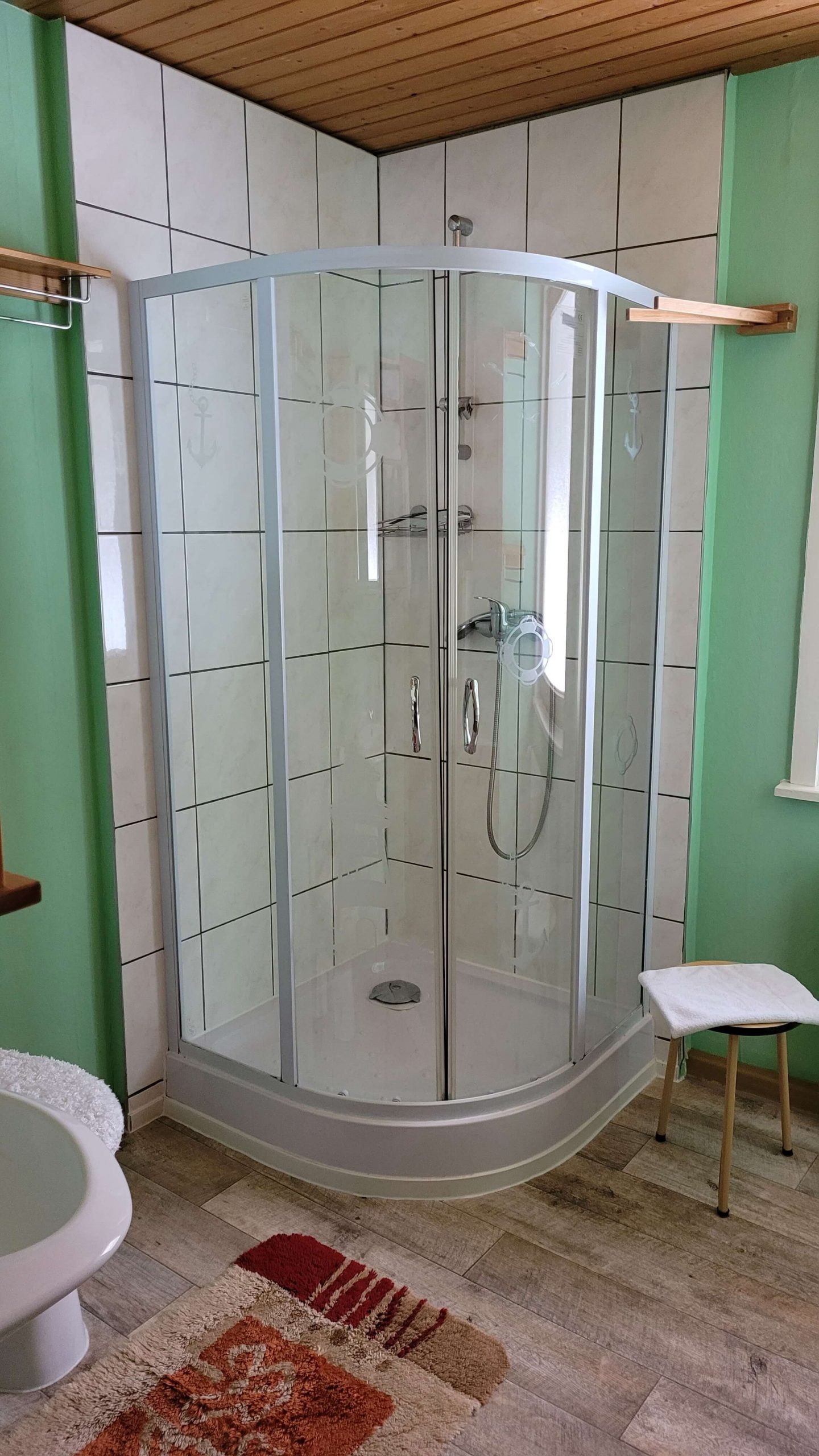 Die kleine Herberge hat 1 Doppelzimmer und 3 Mehrbettzimmer je 1 Doppelbett und 1 Etagenbett. Sie verfügt über eine Küche, eine Toilette, ein Bad mit Dusche und Toilette sowie ein breiter großer Gang der für Kinder zum spielen geeignet ist. Es gib auch eine Waschmaschine und Geschirrspülmaschine. Geschirr ist ausreichend vorhanden. Es kommt des öfteren vor, dass sich das Geschirr aus der kleinen Herberge in der Küche der großen Herberge befindet. Mieter von beiden Herberge nehmen es mit der Zuordnung nicht so genau. Das ist nicht weiter tragisch, Mieter von der kleinen Herberge bekommen ausreichend Geschirr dann wieder aus der großen Herberge.